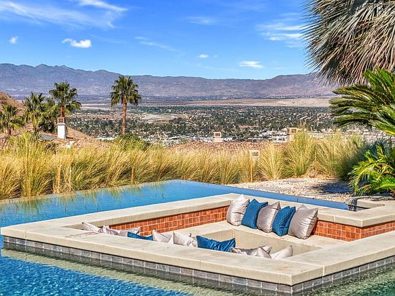 Nestled in the hills of Rancho Mirage within the prestigious Mirada Estates community, this stunning 4,348 SqFt residence on an expansive 23,000+ SqFt lot captures breathtaking mountain and city lights views. Featuring 3 spacious bedrooms, 5 bathrooms, a state-of-the-art movie theater, gym, and dedicated office, this home is a masterpiece of luxury and functionality.The gourmet kitchen is a chef's dream, equipped with commercial-grade appliances, dual ovens, dual dishwashers, and ample prep space. Floor-to-ceiling windows and expansive sliding door systems seamlessly connect indoor and outdoor spaces, embodying California's quintessential indoor-outdoor lifestyle.Step outside to an entertainer's paradise: an infinity pool wraps around a cozy fire pit, offering panoramic views of the Coachella Valley. Additional backyard amenities include a spa, outdoor fireplace, and spacious lounge areas for unforgettable gatherings.Mirada Estates homeowners enjoy exclusive access to the amenities at the Ritz-Carlton, including fine dining, discounted room rates, a world-class fitness center, and a luxurious spa. Embrace elevated living with this exceptional residence - a true oasis in the heart of Rancho Mirage.