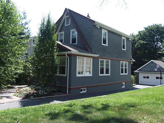 Charming 4 bedroom side hall colonial. Many upgrades have been done to this move in condition home.First floor has wonderful oak floors and chestnut trim moldings. The kitchen was done in 2002 with birch cabinets and the original fur floor refinished.Formal dining room and cozy den off of the large living room. Sunroom off of kitchen has radiant floors, wood burning stove and anderson windows overlooking the rear garden. Second floor has four bedrooms and a full bath that was redone in 2007 with a Pearle whirlpool tub, vessel sink and marble mosaic tile floor.House has a high velocity c/a system, 200 amp electric service and replacement windows. Gas/hot water with 4 zones of heat. Outside is a lush landscaped front yard with low maintenance material, lilac blue stone walkway and small water feature. In the rear is a koi fish pond, bluestone patio and a flat grass area as well. Two car garage with loft and underground sprinklers.