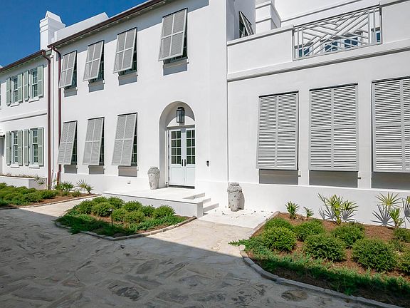 24 Smugglers Alley is a newly completed Alys Beach courtyard home built by Alys Beach Construction and designed by renowned Pledger Architect. This 4 bedroom plus bunk home fronts Turtle Bale Pedestrian Path which leads directly to the Turtle Bale Beach Access and Gulf of Mexico. The tasteful professionally designed interior furnishings set the tone upon entering the main foyer. An open layout floorplan offers a great flow into the living/dining/kitchen area with beautiful coffered ceilings and venetian plastered walls. The first floor also includes a large guest suite, laundry room, covered outdoor living area with summer kitchen, pool and lounge area. Two single car garages balance the alley entry of the home. On the second floor, the northern wing of the house is dedicated entirely to the primary bedroom suite which also has its own large private rooftop terrace. The southern wing is comprised of two guest suite bedrooms and a large bunk room.