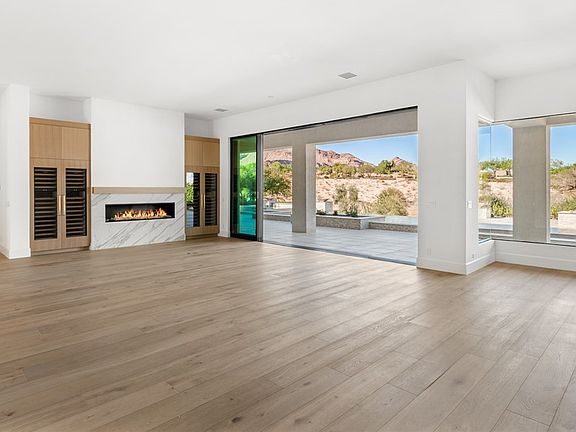 Situated within the prestigious guard-gated community of The Ridges, this single-story golf course residence epitomizes modern elegance. Thoughtfully reimagined with wide plank hardwood floors, custom rift oak cabinetry, and solid rift oak doors throughout. The designer kitchen is a true showpiece featuring a full butler’s pantry, coffee and prep station, and a bespoke white and brass L’Atelier Paris range accented by Waterworks fixtures. The open-concept great room showcases expansive multi-slide glass doors framing spectacular golf course views. The serene primary suite offers dual custom closets and a spa-inspired bath with a marble shower and soaking tub. Designed for entertaining, the backyard impresses with a sleek pool and spa, firepit, and panoramic fairway vistas—an exceptional retreat in one of Las Vegas’ most coveted communities.