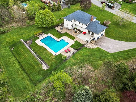 WOW, this 3,600+ sq.ft home offers sunny spaces & the open floor plan we all want! Oversized kitchen offers multiple work stations, island, bar counter w/stools & large dining area. Kitchen opens to huge family room w/wooden beams, cathedral ceiling, floor to ceiling brick fireplace & views of and access to backyard. A warm dining room w/french doors for those special meals. There is a formal living room, spacious foyer, 1/2 bath/laundry PLUS a private den/office. Head upstairs & enjoy your well scaled primary suite w/a spa bathroom w/jacuzzi & walk in closet, 3 additional bedrooms & guest bath complete the 2nd floor. Full basement for storage or if you need more space for living. This house really shines on the outside! Recently updated farmers porch overlooks the broad front yard & quiet street. STUNNING large heated pool w/new hardscape/fencing, & gas firepit. Vacation at home, tons of room for kids/dogs to play in the yard.