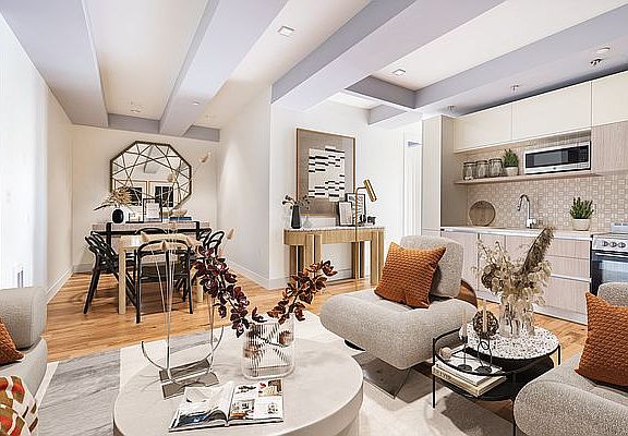 Prime Bushwick 2BR/1BA This new-construction apartment enjoys tremendous light from large windows. An open living area features a renovated kitchen, appointed with stainless steel appliances and Caesarstone countertops. Two even sized rooms face southwest and can accommodate a queen-sized bed. Apartment 2B features a modern bathroom, recessed lighting throughout and integrated split air conditioning units in each room. Please inquire about pricing structure. Cooperating brokers are welcome, please collect your own fee. Please note that photos are of a similar apartment. Photos have been virtually staged. Floor plan is for the actual apartment line.