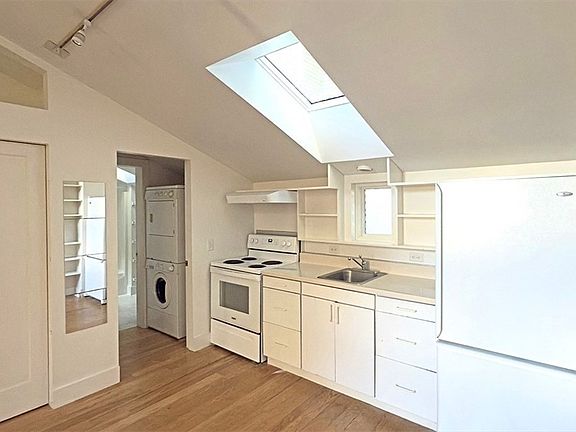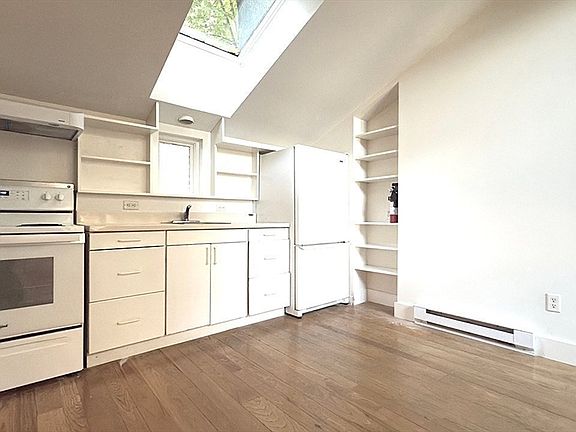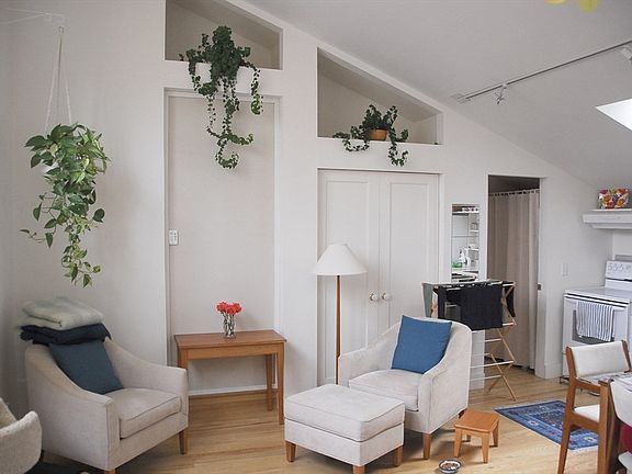 Unique, elegant, light-filled, custom one-bedroom apartment in a prime Northampton location. This small (600 sq. ft.) ground-floor apartment is a rear addition to a private home on quiet tree-lined street. With its own entrance, a large screened porch (not included in the 600 sq. ft.) and deck, it is a precious, private oasis. The space features high ceilings with fan, an 8' x 8' picture window, 4 skylights, hardwood floors, full bath, in-unit washer/dryer plus a small additional loft space ideal for storage. Convenient, assigned off-street parking. Rent includes hot water, high-speed internet, trash and snow removal. Tenant pays for electricity which includes heat (In past years the electric bill, when spread over 12 months, has averaged around $175/month.) Located one mile from both Smith College and downtown Northampton; one block from Stop & Shop and bike path entrance.