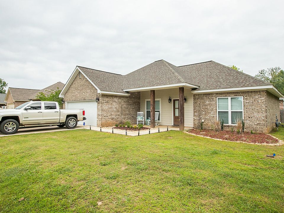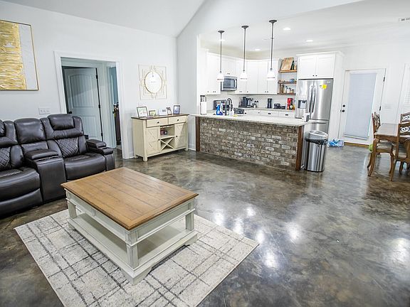 This 3 bedroom, 2 bath, split-floor plan home is perfectly placed down South Montgomery in the Stone Ridge subdivision. Featuring: open kitchen with custom brick breakfast bar, dining area, stainless steel appliances and gas stove ~ living room with vaulted ceilings and gas fireplace ~ finished concrete floors throughout ~ master suite with---double vanity, tiled shower and soaking tub ~ covered back patio- perfect for entertaining!!
