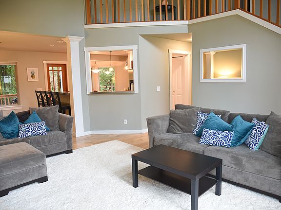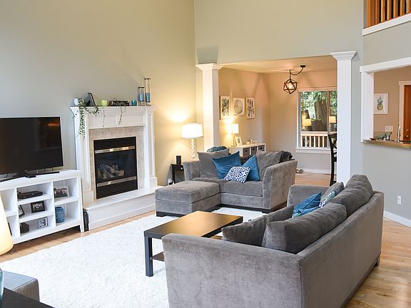 Gorgeous custom built home featuring Master Bedroom on the main floor with a updated on suite bath. Country setting with creek running thru nature trail adjoining two sides of property. Features include 3 spacious bedrooms, den/office or 4th bedroom, 2.5 baths, high vaulted ceiling that flood the living room with light, level property for outside enjoyment/entertaining. Beautiful hardwood floors accent the open floor plan. Easy access to gate 13.
