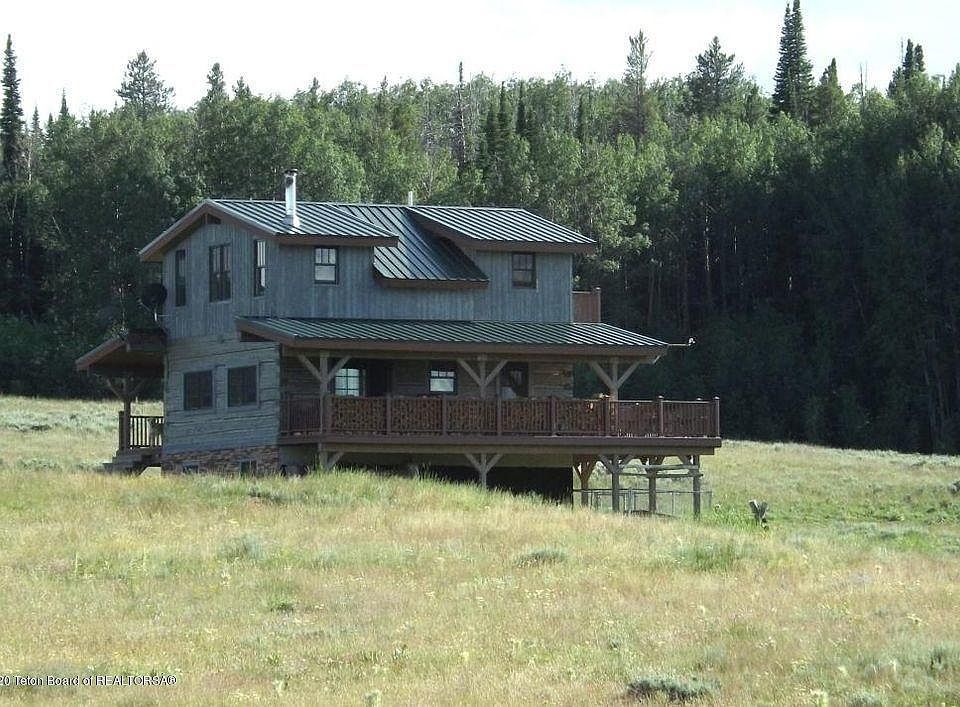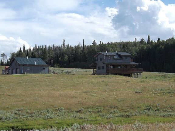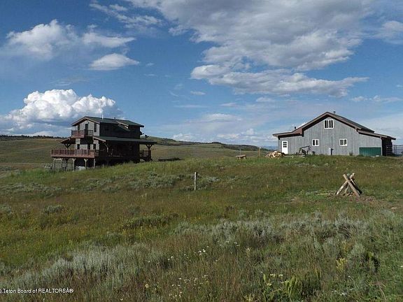 Great cabin or year round house. Fantastic view of the Winds and Gros-ventre. Borders the National Forest. Fantastic hunting and snow machine country. Granite counter tops in the kitchen with stairless appliances. Wood floors through out the home except basement is stained concrete. Great room on the main floor with wood stove. Upstairs has two bedrooms and bath, lower level has 2 bedrooms and bath. Walk out to the lot Very nice covered deck on three sides of home. 3 car detached garage with guest quarters above for those extra hunters. Bring your horses and ride out in the forest. Elec in-floor heat on main and lower level. Located off the county road.