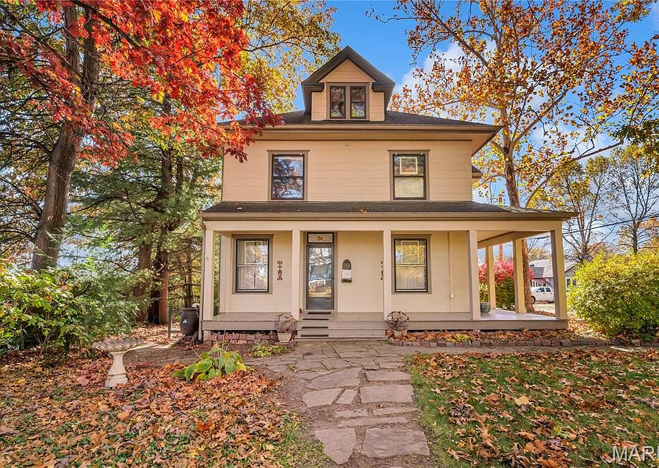 Step into a piece of Ferguson history with this charming 4-bedroom, 1.5-bath home! Nestled on a generous corner lot, it welcomes you with a stone walkway and wraparound front porch. This is the perfect spot to relax, visit with neighbors, or enjoy quiet summer evenings. Inside, the home is full of character, featuring original woodwork, hardwood floors, and a beautiful staircase with intricate details that sets the tone for the rest of the house. The dining room is warm and inviting with a gas fireplace and built-in shelves. The main level also features a family room, convenient half bath and kitchen with a gas range, electric oven, warming drawer, dishwasher and refrigerator. Additional appliances, including a deep freezer, an extra refrigerator, and the washer and dryer in the basement, are all included. Upstairs, you’ll find four bedrooms, each with a ceiling fan, along with a partially remodeled full bath. Stairs lead to the attic, offering flexible space that could easily become additional living area, a playroom, or a home office, providing plenty of room to grow! Outside, the backyard is inviting and spacious, with a back porch and mature burning bushes along one side that provide privacy and color. The large driveway and parking pad offer plenty of off-street parking.