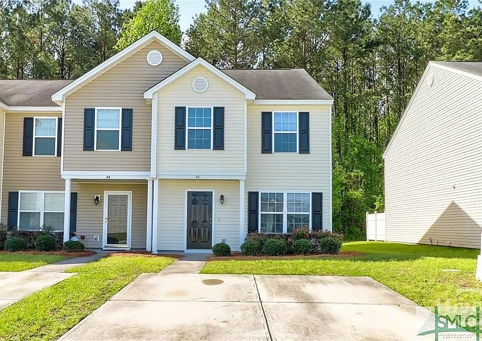 Coming Soon!! 24 Transom Rd – an open and spacious END UNIT 3-bedroom, 2.5-bath townhome in the heart of Port Wentworth. Come home to a spacious open floor plan featuring a large living area perfect for relaxing or entertaining that easily flows into dining space to host your gatherings. Start your day by enjoying breakfast in your eat-in kitchen, featuring a high-top peninsula. Enjoy warm laminate flooring on both floors, updated wood stair treads, cool and calming paint and a very moderate HOA. Upstairs, you'll find three well-appointed bedrooms, including a private primary suite with a vaulted ceiling, walk-in closet, and an en-suite bath featuring an updated, generous soaking tub—perfect for unwinding after a long day. Enjoy an extended backyard that backs up to greenspace, which has extra space for entertaining or relaxing on any southern day or night. Located close to Pooler, Savannah, and I-95, just minutes from Gulfstream, the Port of Savannah, and a quick commute to Savannah/Hilton Head International Airport. This home combines low maintenance living with comfort and convenience.