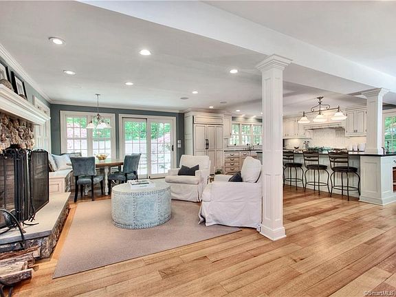 Just minutes to schools, town center & the amenities of Weston~Field Club, Racquet Club, Lachat Town Farm, Ball Fields.... this perfectly updated 5BR, 3/1BA home on a quiet cul-de-sac awaits your arrival. Love to cook for family & friends? You will swoon over the expansive chef's kitchen w/custom cabinets that will surely be the heart of your home-over-sized island, dining area w/built-in benches, fireplace w/sitting area-all of this adjoins the vaulted ceiling family room w/fireplace...perfect for curling up w/a book or bingeing on Netflix. Feeding a crowd? The formal dining room allows for plenty of seating. Open the French doors to the expansive blue-stone patio & bring the outdoors in. Dine al fresco, lounge, get a fire going in the stone fireplace.... make s'mores or get cozy on cool summer & winter nights. Need to work from home? The office/den allows for privacy & the quiet you need to get it done. Be completely enveloped in the sanctuary of the master bath, who needs the spa? Turn on the gas fireplace in the master bedroom to relax as you wind down for the night. The finished lower level is a kid haven or man cave. You will no doubt enjoy all this property has to offer.... level back yard & spacious front yard for soccer, baseball, etc. The friendly neighborhood is the perfect place for a stroll, a run or a bike ride. Weston is named one of the safest towns in CT & US News just ranked Weston High School #2 in CT. Come elevate your every day from this delightful home!