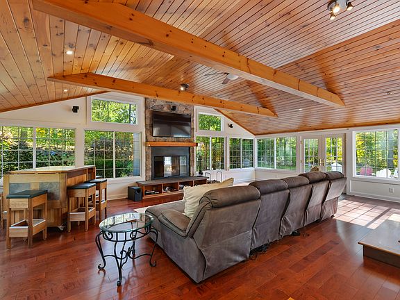 Nestled on a quiet cul-de-sac, this private oasis is truly move-in ready! Set on over an acre of beautifully landscaped grounds, this stunningly updated home offers 4 spacious bedrooms and 3 full bathrooms. The open-concept layout features soaring vaulted ceilings, hardwood floors, and three fireplaces that add warmth and character throughout. The fabulous, finished walk-out lower level includes a full bath, wet bar, rec room, bedroom and cozy fireplace-perfect for entertaining or relaxed everyday living. Step outside to a generous stone patio that overlooks a heated gunite pool, creating your own backyard retreat. Don't miss this opportunity to make this picture-perfect home your own!