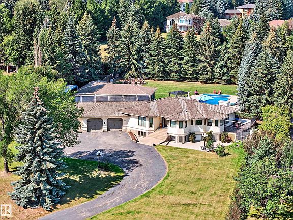 Immaculate 2,100 sq. ft. raised bungalow, set on 1.02 acres with views of the Sturgeon Valley. This home showcases maple hardwood flooring, oak crown moulding, and elegant finishes throughout. The main level features a gourmet kitchen with granite countertops, new appliances and a sunny breakfast nook! A formal dining room with French door entry, a bright living room, and a cozy family room with a gas fireplace & built-in oak shelving. The private den offers a custom oak bookcase, ideal for a home office. This residence includes 4 bedrooms and 3 bathrooms, including a stunning primary retreat on the main floor with a spa-inspired 4-pc ensuite & walk-in closet. The fully finished lower level is designed for both relaxation & entertainment, featuring a spacious recreation room, wine room, hobby room, and 3 generous bedrooms. Oversized triple attached garage plus an 1,500 sq. ft. detached garage, ideal for a workshop. Recent upgrades include a backup generator, hot water tank, 2 furnaces & a new pool liner.