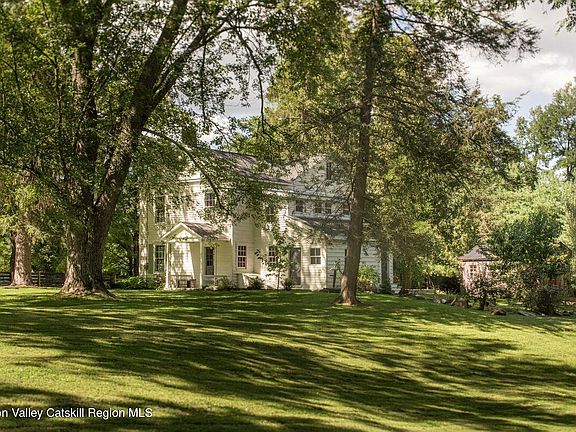 A fabulous example of early Hudson Valley architecture, this c1840 Greek Revival farmhouse sits on three rolling green acres of meadow and gardens. Old growth maples dot the landscape, the property is just 5m from the vibrant city of Hudson but a world away. Its stacked covered porches are framed by classic columns, and gorgeous six-over-six windows are lined with the home's original shutters. Inside you'll find wonderfully high ceilings and wideboard plank floors, four bedrooms and three full baths. So many fabulous original details have been preserved, and so much charm added over the home's long life. The kitchen is large and gracious, with a gas stove and fireplace. The living room has a fabulous onyx mantle and walks out to a private back yard. You'll find a pergola draped with wisteria and a garden shed/studio perfect for projects or creative endeavors. Upstairs, four large bedrooms are all fabulously stylish, light filled and spacious. 24 Van Wyck is architecturally stunning & ideally located, minutes outside of Hudson, just 8m to Amtrak and 2h north of NYC.