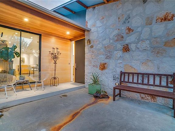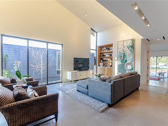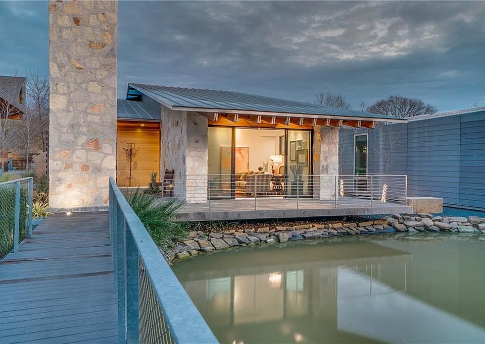 Modern marvel designed by Scott Marek and featured on AIA Dallas Tour of Homes. Home forms a series of interlocking interior and exterior spaces. A pitched roof extends over the spaces to form a ridge and create a variety of ceiling heights. Large overhangs add protection from the elements. Interior spaces spill onto multiple outdoor areas for entertaining. Enjoy the sunset, feed the ducks, hit the White Rock Trail, chill by the fire pit or listen to rain dance on metal roof. Massive marble topped island is a natural gathering spot and Rift cut Oak Cabinetry soars to the ceiling with a large pantry tucked away for easy access. Master Bedroom opens to private backyard and Master Bath has an enormous soaking tub.