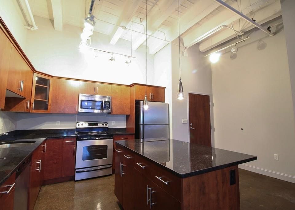 This spacious studio apartment is located inside of the historic Central Square. This unit features stainless steel appliances, cherry wood cabinets, high ceilings, central AC and polished cement floors. Washer and dryer conveniently in unit. Elevator accessible. Fitness center located on lobby level. Storage unit included on the basement level comes with apartment. Located directly across from the MBTA bus stops and commuter rail giving you access to Boston's TD Garden in just a 23 minute train ride. Short distance to the Lynn Boardwalk and Nahant Beach! Private parking available. Tenant pays electric and gas. First, security, half month fee due at signing.- Studio / 0 bed 1 bath - Monthly rent: $1,300 - Due at signing: First, security, half month broker fee ($3,250) - Included in rent: Water, sewage, trash - Parking: $50/month