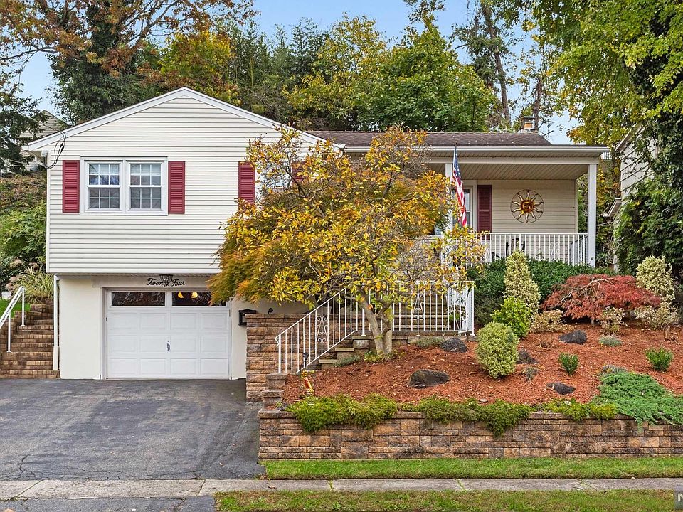 Welcome Home - Beautiful 3 bedrooms & 2.5 bathroom Ranch located at the end of Cul-De-Sac on the hill. Totally remodeled in the last 10 years - ready for new owners to move and start enjoying the long list of attractive amenities, serene setting, relaxing on the front porch or enjoing very private backyard. Inside you will find:large & sunny living room with hill views,eat in kitchen with granite countertops, stainless steel appliances & sliding door to paved patio, master bedroom & bathroom, another bathroom with steam shower. Basement offers family room, full bathroom, gym room, laundry room & access to garage. Property offers: Central Air & Vacuum, laundry chute, ceiling fans, recessed lighting, hardwood floors, custom window treatments. Other important updates include: roof, retaining walls in the front & back, front steps & railings. Excellent location & great layout.