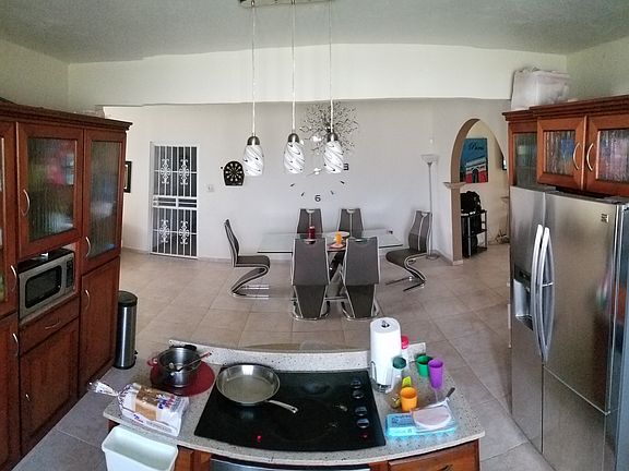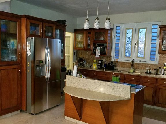 1 story house. 1251 m, 2000 sqft aprox. of construction. 4 beds 2 1/2 bath, 2 w/I closets, open concept living room, dinning, family. Wide kitchen with mahogany cabinets and quartz top, comes with electrical stove top, wall oven and dishwasher. Interior laundry, 2 car garage (closed), security windows, screens, balcony, terrace, storage (2), security system (1080p hd cameras), solar water heater, water tank w motor, 10 K generator , all fenced. A/C inverter console. Good and quiet neighborhood, just steps from supermarket, Walgreens, lab, restaurants and more. 5 mins from airport and Crashboat beach. Price by APPRAISAL /AUG 2018