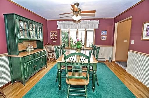 Meticulously maintained Colonial in a lovely neighborhood. This sunfilled home features a great layout for living & entertaining. Spacious entry hall w/coat closet welcomes you in. The kitchen has great cabinet & counter space & center island for prep/seating is removable. Kitchen opens to DR w/HDWD flrs, bow window & detail molding. 1st flr bath has washer/dryer area & convenient shelving. The expansive livingroom w/HDWD flrs, bow window & slider to the wrap around deck w/seating area.The 2nd flr Master w/walk-in closet & bath w/shower. Larger bedroom has 2 closets & pull-down stairs to the attic. Main bath w/tub is convenient to both bedrooms. You will be pleasantly surprised by the size of the 3rd bedroom.The huge unfinished basement offers potential for uses from a home workshop to a rec room & access to the back yard through a bulkhead. The yard is very nicely landscaped with an irrigation system (2nd meter).There is an oversized 2 car garage with ample off street parking.