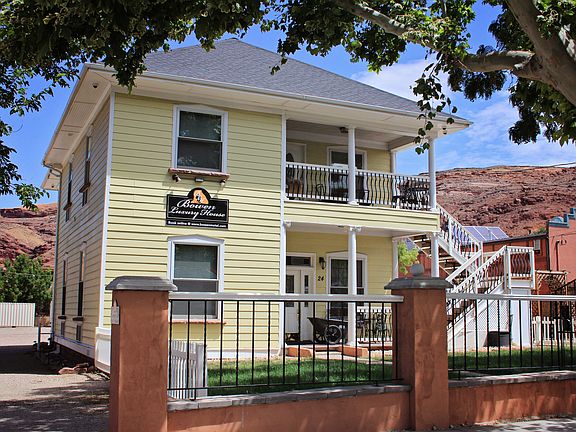 Located in the heart of downtown Moab, The Bowen Luxury House presents a unique opportunity to own a fully operational overnight rental property with additional development potential. This charming 5-bedroom, 5-bathroom home operates as a whole-house vacation rental and is ideally zoned (C-3) for commercial uses, just steps from Main Street and Moab's most visited attractions. The home features five bedrooms, all with en-suite bathrooms, a full kitchen, and an inviting layout across two stories and is offered fully furnished. While the lot offers a bonus of approximately 0.30 acres of excess land at the rear of the house-offering ample opportunity or a redevelopment project in line with the commercial zoning. On-site parking, utility access, and minimal landscaping add to the ease of operations. Don't miss this rare opportunity to own a piece of Moab's thriving hospitality scene with room to grow. Listing is also posted to the commercial MLS # 2092090