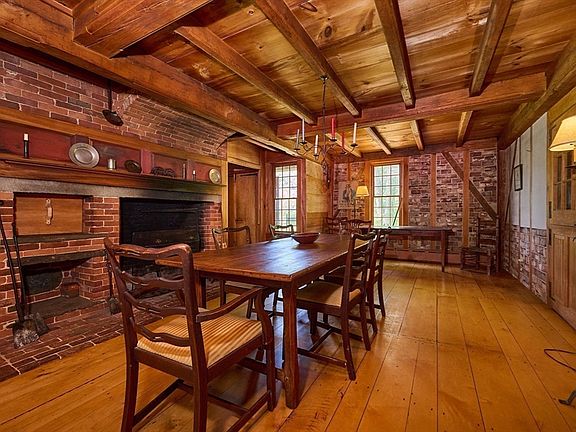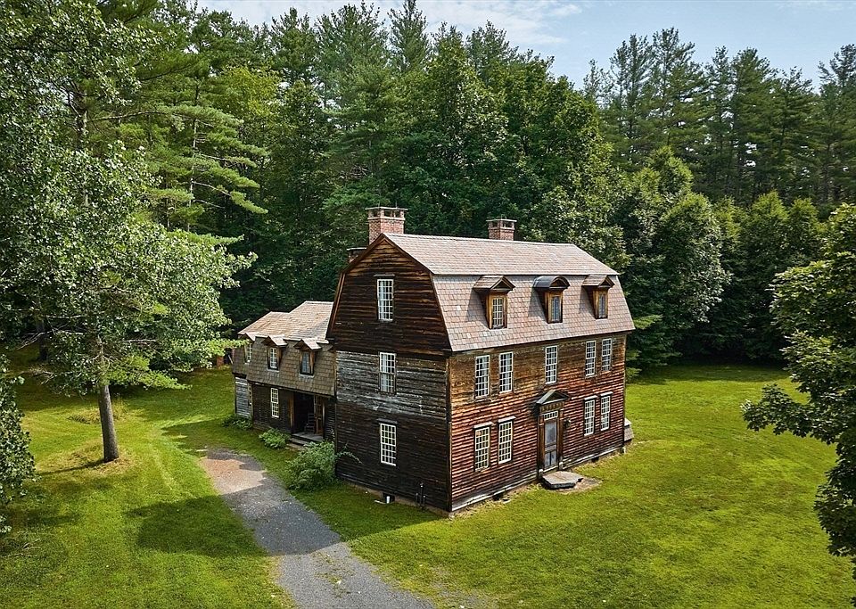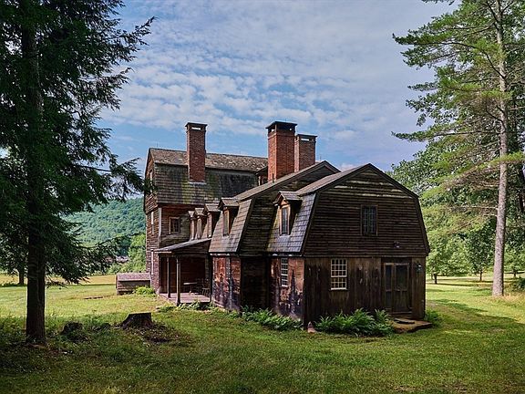 Unique, Gambrel Colonial Timber Frame, is a Masterpiece of exceptional detail, boasting museum-grade, reproduction-quality construction. Master carpenter and Architectural Wood Worker, Arnold Jones played a meticulous role in the reproduction construction of the home over a 20-year period. Employing original hand-made techniques, such as chamfered exposed beams, carved shell cupboards, noting raised panel walls, wainscot, doors and shutters have authentic mortise and tenon joinery secured with wooden pegs. The property features high-level masonry, including an arched brick ceiling over the staircase, period doghouse dormers, transom windows, custom doors, wide plank flooring, and reproduction hardware. With 10 fireplaces, a brick cooking oven, the home exudes quality craftsmanship. Offering 6 bedrooms, 5 baths, (3 are en-suite bedrooms), the Estate sits on 55 acres w ponds, meadows, woodlands & a fruit orchard. Located along the scenic Mohawk Trail, famous for four-season recreation.