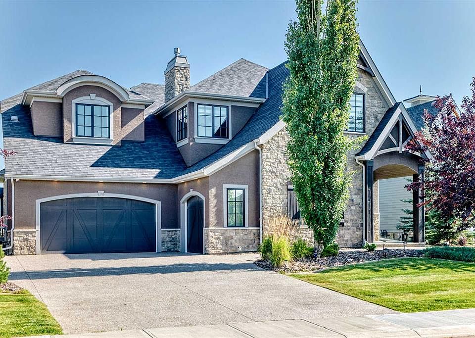 FORMER ASTORIA SHOWHOME – NATIONAL FINALIST FOR HOME OF THE YEAR! Welcome to 24 Rockwater Way in Watermark, a masterpiece by Astoria Custom Homes.Recognized as a Canadian National Finalist for Housing Excellence and a SAM Awards Finalist for Best New Home, this residence was ranked among the TOP FIVE homes in the nation.The home opens with a dramatic foyer, where wide-plank hardwood, 11-foot ceilings, and a curved open-rise staircase set the tone. Sunlight floods the space, illuminating stone-clad columns, wood-beamed ceilings, and hand-painted details. The chef-inspired kitchen featuring dual granite waterfall islands, a La Cornue range, Sub-Zero refrigeration, and a Wolf built-in coffee system. A butler’s pantry with beverage center streamlines entertaining, while custom cabinetry, subtle lighting, and professional-grade finishes complete the space. French doors open to a covered deck with a stone-clad fireplace, extending the gathering space for year-round enjoyment. In the great room, a soaring stone fireplace anchors the design, while exposed beams draw the eye upward.Custom lighting and built-in speakers enhance the ambiance, highlighting both architecture and comfort. A private home office with barn doors and tailored built-ins offers function with style, while the bright dining nook—framed by designer finishes—creates an inviting space for everyday living. Upstairs, the primary suite is a private sanctuary with vaulted ceilings, a fireplace, and a hidden walk-in closet. The spa-inspired ensuite offers heated tile floors, a glass shower, private water closet, and a soaking tub designed for pure serenity. A second guest suite with ensuite, two additional bedrooms with a shared full bath, and a loft overlooking the great room provide space for family and guests. A full laundry room with custom cabinetry adds convenience.The walkout basement is designed for both relaxation and entertaining.Highlights include a rec/theatre room with stone-clad built-ins, wet bar, and wine display; a fifth bedroom with full bath for guests; and walkout access to a covered patio prepped for a hot tub with gas fire bowl rough-in. The triple-attached heated garage features epoxy floors, slab heating, and custom storage—combining function with refined elegance.Over $40,000 in thoughtful upgrades make this home move-in ready, including a 2024 Bosch dishwasher, radon mitigation system, landscaping with new trees, mulch, and driveway sealing, patio improvements with a new staircase and screened patio, and custom window blinds, among other refinements. Watermark at Bearspaw delivers tranquility, privacy, and prestige. Architectural controls preserve timeless beauty, and the absence of commercial development ensures peace and exclusivity. Residents enjoy a central plaza with gazebo and outdoor fire pit, soccer field, reflection pond, BBQ facilities, landscaped parks, NBA-sized sports court and 5 km of paved trails. Book your private showing today and Welcome Home!