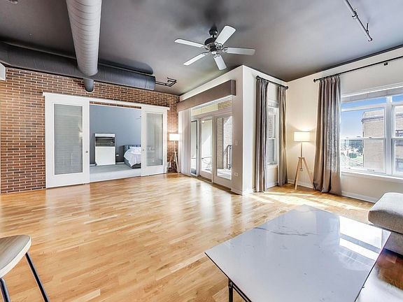 Ideally located in the heart of Downtown Palatine, this spacious top-floor loft offers unmatched convenience just steps from the Metra, restaurants, shopping, parks, and the terrific Saturday Farmer's Market. This is the largest one-bedroom layout in the building, and one of only three units across the hall from the expansive landscaped rooftop deck with lovely views. Designed with style and comfort in mind, the open floor plan features soaring 10-foot exposed ceilings, hardwood floors in the main living area, ceiling fans, and in-floor heating along the exterior wall. The kitchen boasts 42" cherry cabinets with crown molding, granite countertops, stainless steel appliances including a Sub-Zero refrigerator with custom panel, gas range, and accent lighting. The bathroom is beautifully appointed with a double vanity, storage towers, crown molding, and a large, tiled shower with 84" frameless glass doors. The bedroom includes a wall of closets with California Closet organizers and plush carpeting. A private balcony with a retractable screen overlooks the courtyard. Building amenities include a party room, sundeck, and receiving room. Additional perks include a heated underground parking space and a private storage locker. Experience the best of urban living in this exceptional Downtown Palatine residence where location, style, and convenience come together seamlessly.