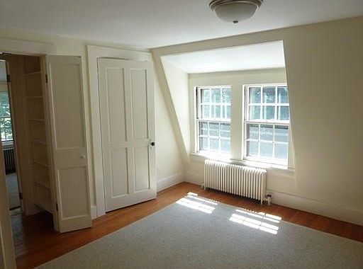 A gracious & comfortable 5 room unit with 4 rooms upstairs and home office/study on the first floor. Shared laundry, free. Parking available on lot for standard sized car.(extra fee) A gracious old house with new bath,new refridgerator, newly rewired electric, warm wood floors and many closets. Heat and hot water included, Short walk into Village and MBTA D line and bus route.. Easy jaunt to the hospitals/medical area. No dogs or cats. Available now or Oct. 1. Tenant pays one mo. rent brokers' fee split between offices. Timing on security deposit is negotiable.