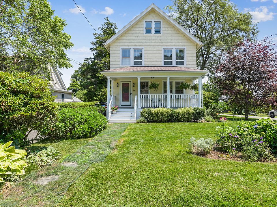 Step into this sunny and cheerful 3-bedroom, 2-bath home with classic New England charm. Moments from the heart of Mystic, this beautifully maintained property offers lovely views of the Mystic River and Mason's Island, creating a warm, inviting atmosphere. Hardwood floors flow throughout, while natural light pours in, creating a bright, airy feel. The spacious living and dining areas are perfect for gatherings; the well-appointed kitchen blends functionality with vintage charm. A fully finished third story adds incredible versatility: a private home office and a third bedroom/flex space - ideal for guests, hobbies, or additional living. Outside, discover beautifully landscaped native perennial flower and herb gardens, designed to attract pollinators - a true haven for garden and bird lovers. The yard features a perimeter Invisible Fence, allowing your dog full roam. Imagine peaceful mornings or relaxing evenings in this lovely outdoor space, sipping coffee on the deck or simply taking in the serene surroundings. For nature and sports enthusiasts, groomed hiking trails are nearby. Enjoy public access to Beebe Cove (end of Warren Ave.) to launch your kayak or scull for an early paddle. Marinas, gourmet foods, downtown Mystic, and Noank Village are all within a 5-minute drive or 15-minute walk. This property offers the perfect blend of character, comfort, and coastal New England lifestyle. Current Navy Federal loan available for assumption at 3.875% - ask agent for details.