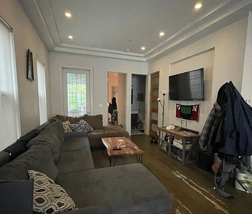 Experience modern comfort in this beautifully renovated duplex featuring a separate kitchen with stunning quartz countertops, stainless steel appliances, and recessed lighting. Enjoy the charm of hardwood floors, a new bath and kitchen, and the convenience of in-unit laundry. Cook with ease on a gas stove and take advantage of a dishwasher, microwave, and garbage disposal. Stay cool year-round with central A/C and relax outdoors on your private deck, patio, or porch. This home also offers access to a shared yard and includes desirable touches like a breakfast bar and all-new appliances perfect for stylish, easy living.