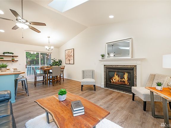 Charming home on a rare sunny lot with easy Sudden Valley access! 3 beds, 1.75 baths and 1,500sf. Open-concept living/dining/kitchen perfect for entertaining. Freshly painted with new carpet throughout. Skylights, vaulted ceilings, cozy window bench & fireplace. Newer flooring, front porch and roof. Walk-in closet and deck off Master bedroom. Large lower level family room. Back deck leads to great fully fenced backyard, firepit and garden. Backs up to 350 acre Stimpson Reserve. Community amenities include trails, beach access, tennis courts and golf course.