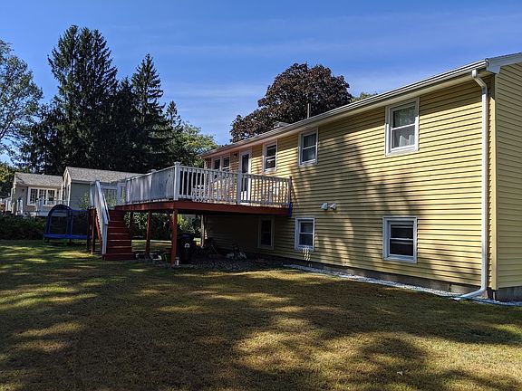 Walking distance to Floral Street School. Well maintained property being offered that has many improvements during sellers short ownership of only a few years. They cared for and improved this property as they wanted it to be their "forever home " including adding new front stairway/railings, new doorway, and a newly paved driveway,. They cleared the backyard and improved the oversized rear large 22 'x 12 'wood deck. This home boasts three good sized bedrooms on the main living level and a fourth bonus room being used as a 4th bedroom with brand new full sized bath complete with shower, granite counter-top vanity, and laundry set up. You will also be sure to enjoy the hardwood floors, newly applianced stainless steel kitchen with center island/breakfast bar, recessed lighting, family room with wood burning fireplace, ceiling fan, newer windows and garage. Other improvements also include Mass Save workmanship to improve energy efficiency and upgrading electric service w/200 amps.