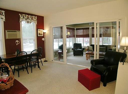You've found it! This turnkey, Summer Village at the Pond, 'Dogwood' cottage is fully loaded and ready to go for next season. It even comes with a 4-seat golf cart! Interior is tastefully decorated with bamboo shades, neutral Berber carpet, an electric FP, dining for six and a full futon for guests. The crisp white kitchen is fully applianced and comes with all utensils, and glassware. Both bedrooms are good-sized and stocked with bureaus linens and towels. A separate closet in the hallway houses the washer/dryer. New A/C was installed in 2014. The sunny front yard includes easy-care, perennial plantings and seating for 6, while the back borders shady, peaceful woodlands. Located just off a cul-de-sac, it is a great place for young kids to safely play and ride bikes.