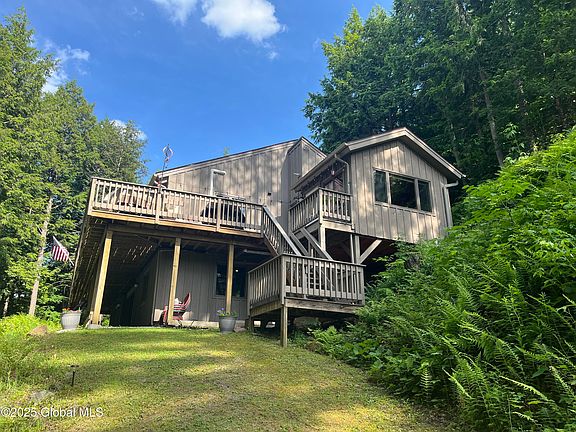 Experience Adirondack at its finest in this beautiful year-round timber peg home nestled on 125' of pristine Paradox Lake frontage and over an acre of land. Listed at $975,000, this 3 bed, 3 bath retreat was built in 1987and offers over 1,500 sq ft of living space, surrounded by mature trees for privacy. The great room features a floor-to-ceiling stone fireplace, while the wraparound deck provides breathtaking views of the lake and mountains. The kitchen has hickory cabinets and granite countertop, blending rustic charm with modern conveniences. Additional features include a spacious 3 car garage, a private lakefront with dock, lakeside deck, and kayak shed-everything you need for 4 season lakefront living. Seller will leave home furnished—just bring your clothes and ENJOY LAKE LIFE!!
