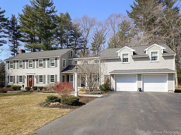 Located in a rural neighborhood, this stylishly updated four-bedroom Colonial sits on a wooded 5+ acre lot. At the heart of this open-concept home is the light-filled, architect-designed great room featuring a stone fireplace, built-ins and a mezzanine level. Running along the back of the house, the eat-in kitchen connects to the dining room with a fireplace and overlooks the private back yard and pond. A cozy sitting room adjoins the kitchen. There are three good sized bedrooms on the second floor (one with an en suite bathroom) as well as a family bathroom. A corner office area leads to the mezzanine which connects to the master suite. There are two staircases in this unique home; the stairs from the great room lead up to the private master suite which features a walk-in closet and master bathroom as well as a private mahogany balcony.