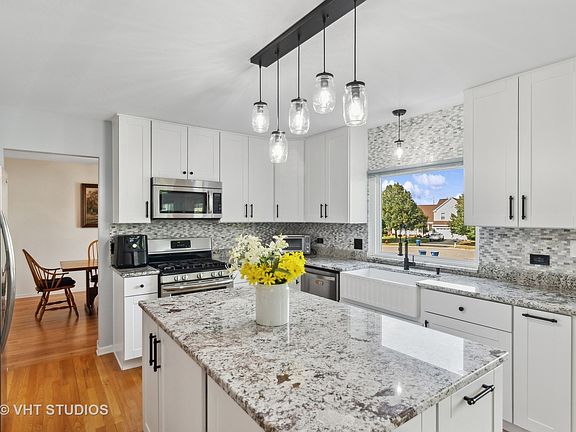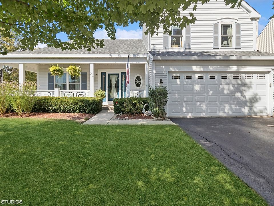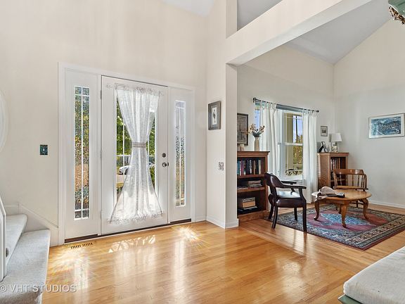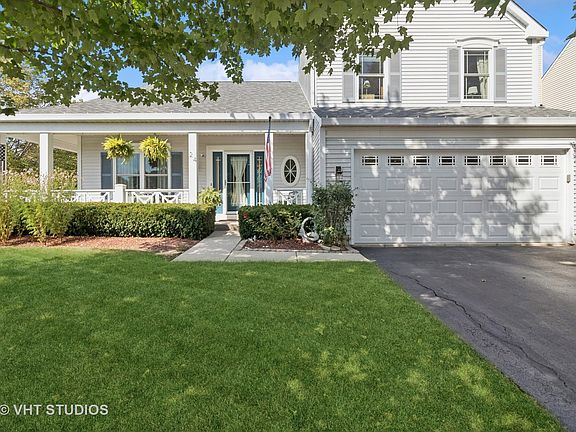 Welcome to your dream home in Savanna Springs! This Stunning 3-bedroom, 2.5-bath home on a corner lot featuring fantastic curb appeal, new landscaping, and a charming wrap-around front porch. Step inside to a stunning two-story foyer with a custom coat bench and beautiful hardwood floors. The fully renovated kitchen shines with sleek, modern cabinetry and back splash, granite countertops, a spacious center island, stainless steel appliances, and a charming farmhouse sink-ideal for any home chef! The open-concept design flows seamlessly into the sun-drenched family room, with a wall of windows and vaulted ceilings with skylights creating a bright and inviting space, perfect for entertaining. The living room at the front of the house has brand new wood floors and opens up to the formal dining room which offers ample space for special occasions and game nights alike. Dual staircases provide convenient access to the second-floor bedrooms from both the foyer and the family room. Step out from the kitchen onto the composite deck, providing a low-maintenance retreat that seamlessly extends to a brand-new paver patio. This outdoor oasis is perfect for relaxing, entertaining, and hosting summer BBQs, offering the ideal setting for outdoor fun. Upstairs, you can retreat to the spacious primary suite, featuring a walk-in closet and a spa-like bathroom with dual sinks, a step-in shower, and a relaxing soaker tub under another skylight-perfect for unwinding. Two additional generously sized bedrooms share an updated hallway bath. The finished English basement includes a Rec Room with a built-in desk, large counter and beverage fridge, ideal for movie nights or a game room. There's also a large unfinished area for all your storage needs. The large backyard, partially fenced, features garden beds, a storage shed, and plenty of room to lounge and play. Amazing neighbors, convenient access to Metra, shopping in Gurnee and Round Lake, and nearby trails for hiking and biking at Lake County Forest Preserves make this home a true gem!