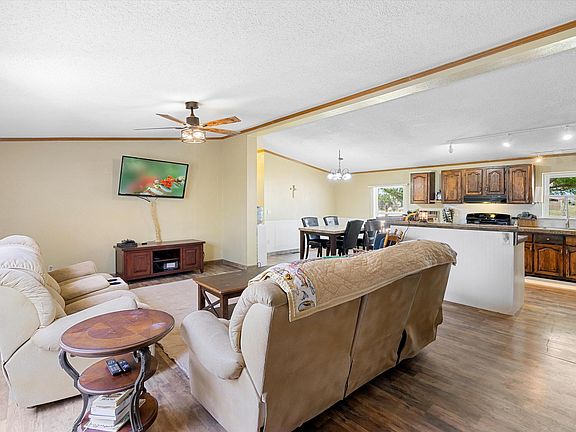 Come enjoy quiet country living! This 1996 champion home has lots to offer. All 2.5 acres on a corner lot are fenced, cross-fenced with a privacy fence surrounding the front door, and a section ready for gardening. Large kitchen with lots of counter and cabinet space. Open concept layout that's great for families and entertaining. Three spacious bedroom, all with ceiling fans, walk in closets, and laminate floors. Vinyl windows that ensure natural light enters each room, while maintaining energy efficiency. Brand new metal roof and water heater. A standout feature is the 30x20x15 ft carport. The property has potential for RV hook up with 120 volt. Take a break and come see this home!