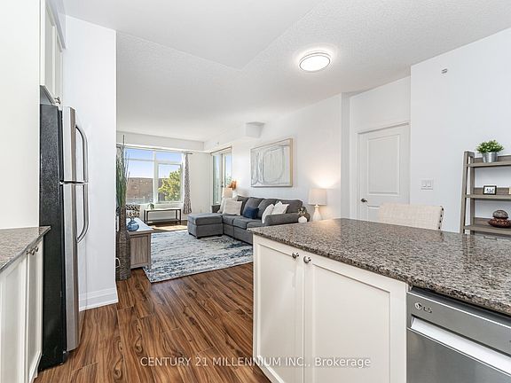 Welcome to this beautifully maintained 2-bedroom, 2-full bathroom suite at the prestigious Allegra Condominiums, offering over 900 sq ft of stylish, functional living space. This bright, open-concept unit features a sleek kitchen with granite countertops, under-cabinet lighting, stainless steel appliances, and an oversized breakfast bar --- ideal for casual dining or entertaining. The living room opens onto a spacious balcony that seamlessly connects to the primary bedroom, creating a relaxing indoor-outdoor flow. Both bedrooms are generously sized, each offering a walk-in closet, while the primary suite includes a private ensuite bathroom. Residents of Allegra enjoy premium amenities, including a 24-hour concierge, fully equipped fitness centre, party room, sauna, theatre room, games room, and visitor parking. The building is meticulously maintained and professionally managed, providing peace of mind and a welcoming community feel. Located in the heart of Vaughan/Woodbridge, this condo is steps from transit, major highways, shopping, dining, parks, and schools --- making it perfect for professionals, young families, or downsizers looking for convenience without compromise. A rare find --- spacious, move-in ready, and ideally located. Dont miss this opportunity to call this your new home!