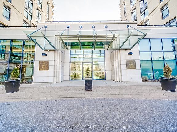 Welcome to this stunning 1-bedroom + den condo at the prestigious Allegra Condominiums, located at 24 Woodstream Boulevard in Woodbridge. This immaculate 7th-floor unit offers nearly 800 sq ft of modern, spacious living with a functional layout and exceptional amenities. The condo features a bright and spacious bedroom with an ensuite bathroom and a walk-in closet complete with custom organizers. Additionally, there is a convenient powder room for guests. The den is equipped with built-in storage cabinets and a desk, making it perfect for a home office and extra storage space. Elegant laminate and porcelain flooring flow throughout the unit, complimenting the sleek kitchen with granite countertops, undermount sinks, and stainless steel appliances. Enjoy the full balcony with great views, perfect for relaxing or entertaining.The building itself offers outstanding features, including a 24-hour concierge and security, underground parking, a party room, two exercise rooms, a sauna, a theater room, and a games room. Located in a clean, well-managed building, the unit is also close to restaurants, parks, schools, and transit, with easy access to major highways for added convenience if you are driving. The monthly maintenance fees cover air conditioning, common element maintenance, heat, building insurance, and water, making it a stress-free place to live. This is truly a blend of comfort, style, and convenience, and a must-see gem close to the heart of Woodbridge. Dont miss out schedule a viewing today!