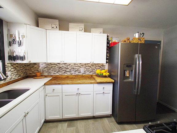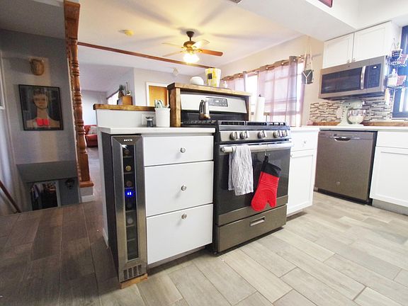 Distinctive design with effortless functionality equals the IDEAL HOME! This one of a kind well-built Rambler will impress you from ''5 STAR'' curb appeal to the REALITY of living your dream! 5 bedrooms/2 bathrooms, modern updated style throughout, practical open layout, and a walk-out basement to a huge fenced yard! Bonus storage spaces. Attached garage opens to Posh New Kitchen with gas oven. Quartz & butcher block! All appliances stay, includes a wine fridge! Full second kitchen in the basement! Gorgeous family friendly new flooring! Fenced yard. Two good sized sheds, Entertaining deck and Private patio! All this and more in a peaceful pleasant neighborhood!
