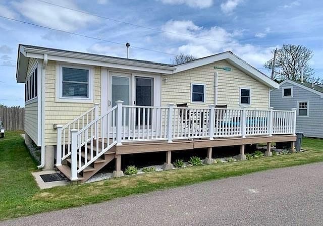 Looking for a more affordable way to live at the beach? This is a great opportunity to buy into the iconic Roy Carpenters Beach community in Matunuck RI. Large 3 bedroom cottage (840 interior sq ft) plus additional outdoor living space with private backyard patio and front deck with both a peek at the ocean and sunsets over the adjacent corn fields! The cottage is located on a great lot with plenty of yard space, parking and privacy. Roys is a large, private beach community on leased land that has been owned and operated by the same family for generations. It is very well maintained and in some respects a “ throw-back” to simpler times when neighbors knew each other and raised children to be outdoors all summer in a safe and active environment. Roys is renowned for the social life, great community and daily association activities. Access to the property is year round but overnight stays restricted to May 1 - October 15th. Annual lease $4500. This is a gated community with great security and amenities.