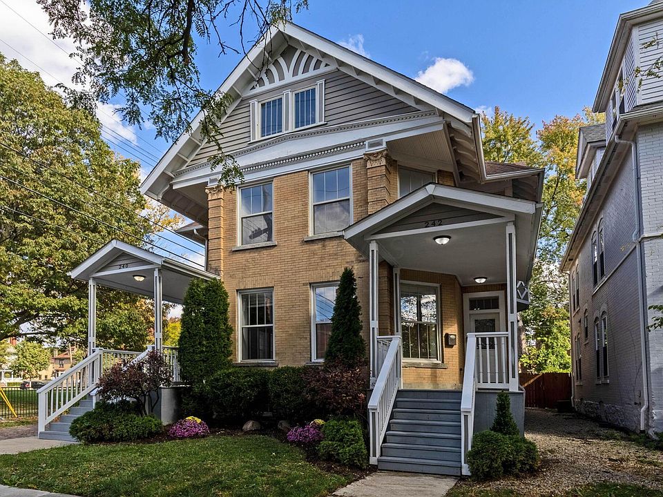 Beautifully updated 3 Story duplex with 5000+ Square Feet, each side offering 4-5 Bedrooms, 3.5 Baths. Ideal for both investors and owner-occupants. Live in one unit & rent the other to offset your mortgage or expand your investment portfolio. Each side has been thoughtfully renovated & move-in ready with fresh paint, new carpet, & stylish finishes thru-out. Unit 240 has a spacious Great Room with Hardwood floors & decorative fireplaces. Formal Dining Area flows into a kitchen outfitted with granite countertops, 42-inch cabinets topped with crown molding, & brand-new Stainless Steel appliances. Upstairs, the primary suite, with a luxury bath includes a jetted tub, large sink, & separate shower, a 2nd bedroom, full bath with shower, & a flex room/office. The 3rd floor offers bedroom, full bath with barn door access, a storage alcove, and a flexible area perfect for guests, a playroom, or additional storage. Unit 242 mirrors the charm & functionality of its counterpart, with Great Room with Engineered Hardwood floors. The open-concept kitchen & dining area feature white 42-inch soft-close cabinets, granite countertops, a stylish backsplash and Stainless Steel appliances. The 2nd floor includes a spacious primary suite with a jetted tub, walk-in closet with organizers, tile flooring, a second bedroom, office/flex-room, & a full bath with shower. The 3rd floor adds 2 more bedrooms and another full bath, offering plenty of room for family, guests, or home office needs. The property includes two separate covered front porches & deck in the back—ideal for relaxing or entertaining. Additional highlights include exposed brick walls, Ring Doorbell Systems, separate full basements with glass block windows, newer furnaces (240- 2023, 242-2025), New Washer & Dryers, & vinyl replacement windows. Located in a vibrant area within walking distance of Children's Hospital, Blackburn Park, Community Center, tennis courts, restaurants, and easy access to Downtown & Interstate 71 & 70.
