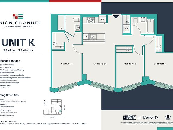 Designed by Fogarty Finger architects, the uniquely crafted residences promote balance in pursuit of the living ideal. Inspired by a neighborhood flowing with artists, creatives, and culture, Union Channel is an ode to the enduring spirit of Brooklyn and no detail has been overlooked. From work-from-home to hosting friends, every apartment is built with intention. Apartment features include open and airy layouts, island kitchens, panelized appliances, industrial countertops, wide-plank flooring, floor-to-ceiling windows, European-like balconies, and ample closet space.