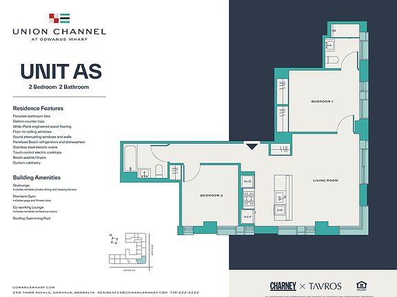 Designed by Fogarty Finger architects, the uniquely crafted residences promote balance in pursuit of the living ideal. Inspired by a neighborhood flowing with artists, creatives, and culture, Union Channel is an ode to the enduring spirit of Brooklyn and no detail has been overlooked. From work-from-home to hosting friends, every apartment is built with intention. Apartment features include open and airy layouts, island kitchens, panelized appliances, industrial countertops, wide-plank flooring, floor-to-ceiling windows, European-like balconies, and ample closet space.