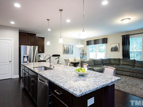 Come savor this east facing home in immaculate condition! Open floorplan with HUGE granite island overlooking dining/gathering space with gas fireplace-perfect for entertaining. Kitchen boasts upgraded appliances, gas range, subway tile and SS refrigerator. Wood flooring thru the first floor. Lg master bedroom, dual vanities in bath, Two beds share private bath with dual sinks. Loft provides flex space with built in desk and room for exercise/chill-out space. Spray foam sealed attic. Community pool.