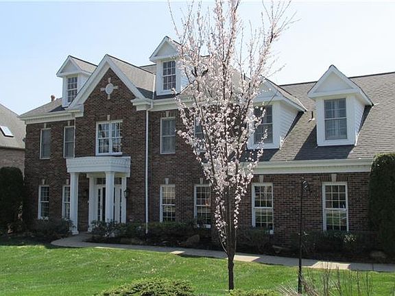 This four bedroom Brick Colonial has been beautifully maintained. The rooms are spacious and a deck with an awning has a phenomenal view of the 4th Tee of Diamond Run Golf Course. Other golf holes are in this panoramic view .The beautiful draperies in the living room remain with the house. The kitchen cabinets are cherry and there is an expansive island. Three full baths and a powder room. The family room has vaulted ceilings , floor to ceiling palladium windows and a brick fireplace with gas logs.The basement has a bar, an exercise room, a storage room , a wine room and a room for TV. This location is minutes to Sewickley Village and I 79.