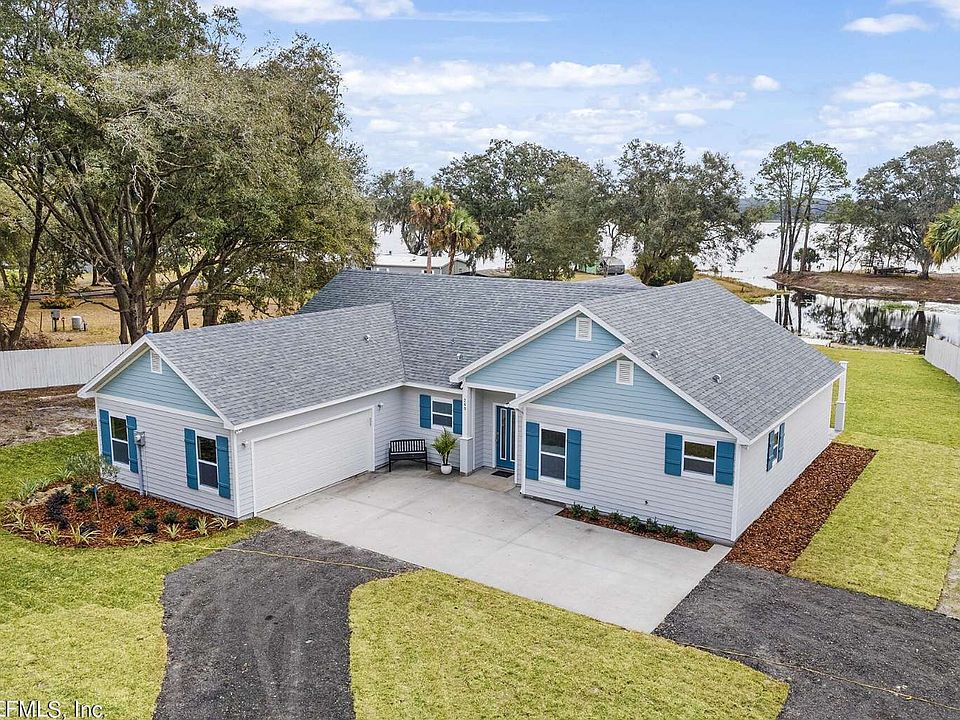 3-year old home in Hawthorne, FL. 4 Bedrooms 2-1/2 Baths. Open-floor plan home, on a lagoon connected to Bream Lake. Hardi-board siding. Large open patio and screened-in lanai. 2-car garage. French doors, Stainless steel appliances. Walk-in pantry. This home is light, open, and airy with great views. White cabinetry keeps it bright. The primary bath has a double vanity, separate toilet closet, and tiled shower. 2nd bathroom has a shower/tub combo. Laundry room with sink. Privacy fencing and flower beds.This property is in Putnam County with lower taxes! Within a ten-mile radius of the city of Hawthorne, there are approximately 380 bodies of water. Home is in the Four Lakes Community with access to Holden Pond, Moss Lee, and Bream Lake. Only 15 miles to Gainesville, FL.