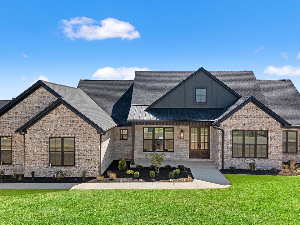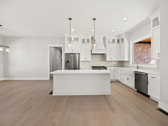 Welcome to this stunning 4-bedroom, 2.5-bath home in the highly sought-after Berkley Hall subdivision—where luxury meets comfort on over an acre of land. This thoughtfully designed home features solid wood floors, a warm and inviting stone fireplace with natural gas logs, and a unique floor plan that feels both upscale and welcoming. The chef's kitchen is a true showstopper, complete with a gas cooktop, large island, stainless steel appliances, quartz countertops, custom cabinetry, and a hidden walk-in pantry. The spacious primary suite flows effortlessly into a custom walk-in closet and directly into the laundry room, blending elegance with everyday ease. The spa-like primary bathroom stuns with designer tile and thoughtful finishes. Enjoy peaceful evenings on the covered front or back porch, surrounded by serenity. With a 2-car garage and timeless details throughout, this home offers refined living with a warm, homey feel.