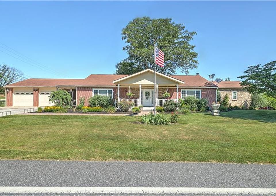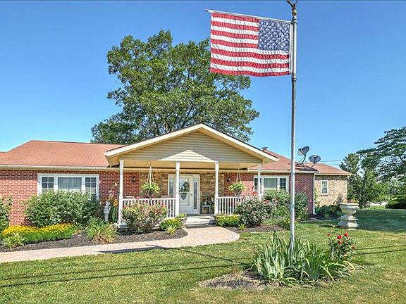 Charming 1956 Brick home with 2 car brick garage and storage above, on .69-acre lot, move-in ready rancher, 3 bedroom, 2 bath. located by New Oxford H.S., M.S., and Elementary School. Over $100,000 worth of renovations done to the house since bought in 2009. All new windows & doors, floors, new kitchen with Dura Tile Flooring, porches and patios, Master Bedroom/Bathroom addition, pavilion, + more. Basement has a Work Bench with loads of cabinets; Game Room. Sump Pump, Gas Water Heater & Boiler, Central Air, Whole House Wood/ Stove, Water Softener, Reverse Osmosis Water Filtering System, Security Video Camera's, Utility Wood Shed/Pavilion. Washer/Dryer hookups on 1st floor and also in the basement. Storage underneath the house, entrance located outside back of house. hot tub on back patio has a roof over it. Wood shed on one side of Pavilion walk through into Pavilion for cookouts, wood stove stays in Pavilion as well as the Rain Water Collector.