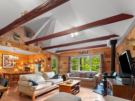 Welcome to your new home away from home! With direct waterfront access to Sebright Bay, this spacious, well-maintained cottage offers a classic chalet-feel without losing modern amenities. The generous 1.07-acre lot provides ample space for outdoor recreation and relaxation. Fun from land to water, the direct waterfront access allows for wade-in-swimming from the armour stone shoreline. With Round Lake just a short boat ride away, the maintenance-free top, 40' cantilevered aluminum dock will be sure to keep adventure right around the corner. This is the perfect lot for hosting and entertaining, featuring 5 bedrooms and 2 bathrooms with open concept living, dining, and kitchen. Cozy, wooden walls create a welcoming atmosphere and an excellent environment to rest until your next adventure. Friends and family are free to pack light, thanks to the conveniently located washer and dryer. Ideally located on a year-round municipally maintained road.
