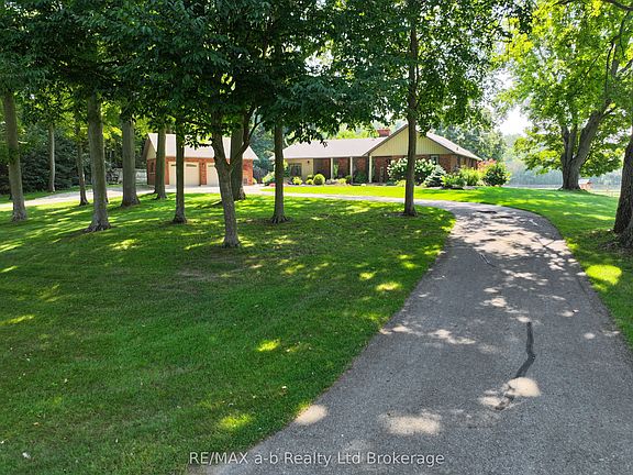 Serene, quiet, and elegant. Hard to describe this hobby farm with its nearly 9 acres, private pond, horse pastures, hip roof barn with stalls, hay storage, machine shop, and a renovated home sitting on small hill surrounded by tall trees. Within 10 minutes of Tillsonburg, the home with a curved driveway with a double car and heated garage, in ground swimming pool, pool house, irrigation, lighting, and a stand by generator, this home shows well during the day and night! Inside we have an oversized laundry/mudroom leading to a kitchen in a new additions with lots of windows, skylights, and surrounding views of the pastures. With three bedrooms on the main floor and two bathroom, and a large rec room and living room and another bathroom and bedroom in the walk out basement, this home has everything for a family or someone looking to take their horses or beef home!