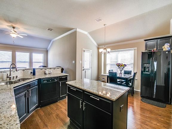 Charming and meticulous maintained home in Rockwall ISD. This amazing 4 bedroom 2 bathroom floor plan is bright, open, spacious and has numerous upgraded features. Floor plan boasts study at the entry, cozy living room equipped with a wood burning fireplace & first floor master suite. Features include stainless GE appl pkg, brushed nickel fixtures, covered patio, rounded corners, 2in. faux wood blinds, granite counter tops, upgraded C Tile in entry & all wet areas. Hardwoods in family, kitchen, study & entry. Energy features include radiant barrier, programmable Nest TStat & much more! No MUD taxes and Rockwall schools!